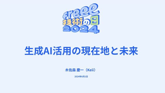 ⽣成AI活⽤の現在地と未来 ⽊佐森 慶⼀(Keii) 2024年6⽉1⽇