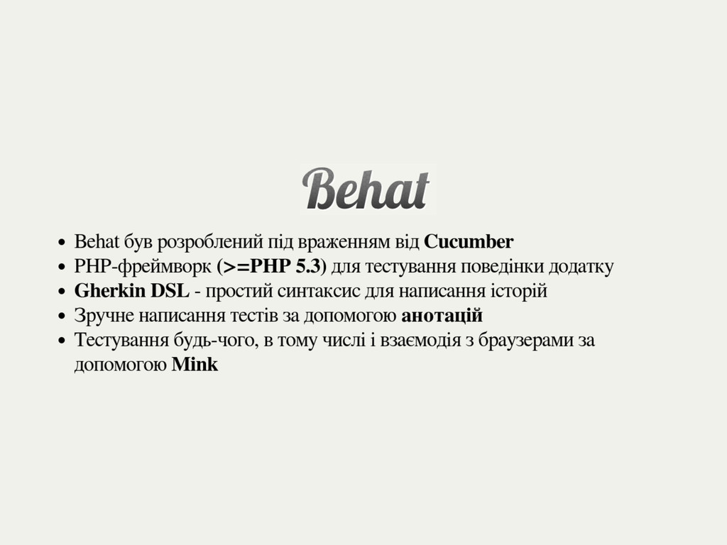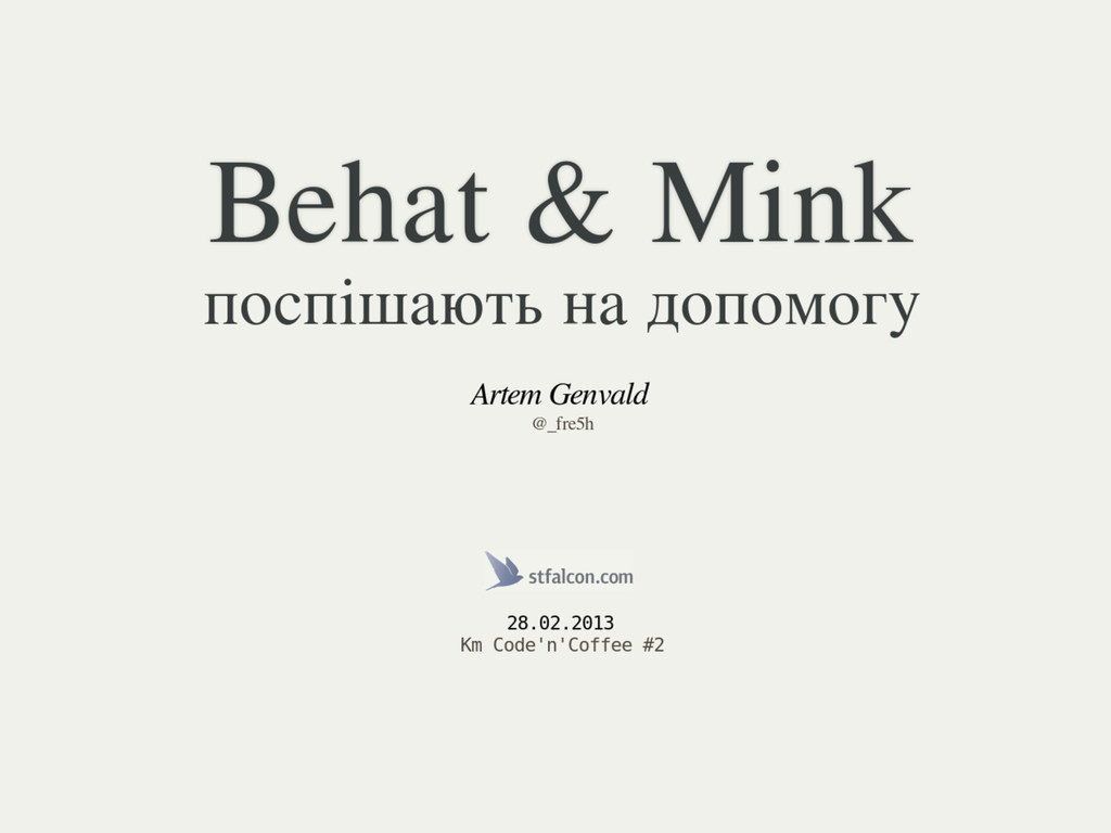 Виступав на Km Code'n'Coffee #2. Це мій перший в житті виступ. Розповідав про PHP-фреймворки для тестування Behat та Mink.