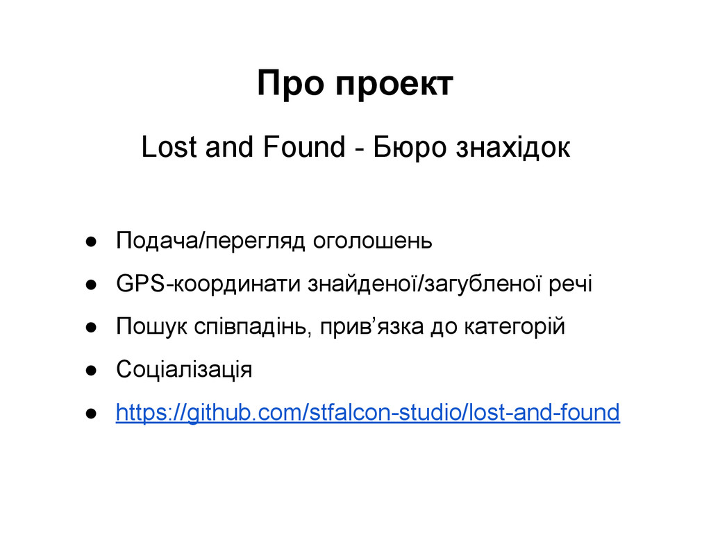 GitHub repository: https://github.com/stfalcon-studio/lost-and-found