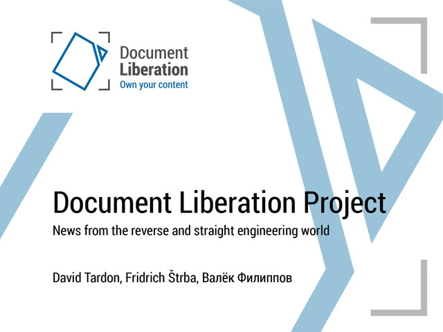 and their content belong to their creators, not software vendors Unhindered access of an owner ... that access to content you own should not be hindered by the fact that the application that created it is not maintained any more or that the application does not work on the particular operating system that you use Importance of truly open standards as a long term solution ... that use of truly open and free standards for encoding digital content is the only long- term guarantee that a user's digital content will never be beholden to a single vendor Importance of FOSS implementation ... that implementation of Free and Open Source Software that can read proprietary file- formats is the best solution to escape vendor lock during the transition period to truly open and free standards