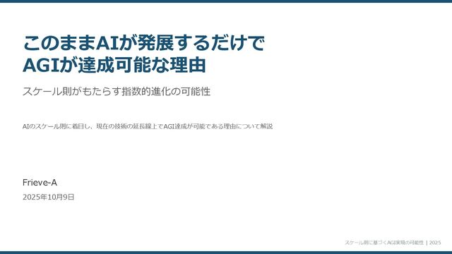 現状のAI技術の延長線上(最新のスケール則の延長線上)でAGIが実現可能である理由を、できるだけ分かりやすく&できるだけかみ砕かず説明することを試みた動画です。これに関連して、AI関連研究開発者がAIのスケールとどう付き合っていくべきかについてもお話しています。