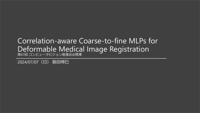 Jinman Kim. “Correlation-Aware Coarse-to-Fine MLPs for Deformable Medical Image Registration,” 9645–54, 2024. https://openaccess.thecvf.com/content/CVPR2024/html/Meng_Correlation-aware_Coarse-to-fine_MLPs_for_Deformable_Medical_Image_Registration_CVPR_2024_paper.html. 2. [SyN] Avants, B. B., C. L. Epstein, M. Grossman, and J. C. Gee. “Symmetric Diffeomorphic Image Registration with Cross-Correlation: Evaluating Automated Labeling of Elderly and Neurodegenerative Brain.” Medical Image Analysis 12, no. 1 (February 2008): 26–41. https://doi.org/10.1016/j.media.2007.06.004. 3. [STNs] Jaderberg, Max, Karen Simonyan, Andrew Zisserman, and Koray Kavukcuoglu. “Spatial Transformer Networks.” arXiv, February 4, 2016. https://doi.org/10.48550/arXiv.1506.02025. 4. [TransMorph] Chen, Junyu, Eric C. Frey, Yufan He, William P. Segars, Ye Li, and Yong Du. “TransMorph: Transformer for Unsupervised Medical Image Registration.” Medical Image Analysis 82 (November 2022): 102615. https://doi.org/10.1016/j.media.2022.102615. 5. [RCN] Zhao, Shengyu, Yue Dong, Eric I.-Chao Chang, and Yan Xu. “Recursive Cascaded Networks for Unsupervised Medical Image Registration,” 10600–610, 2019. https://openaccess.thecvf.com/content_ICCV_2019/html/Zhao_Recursive_Cascaded_Networks_for_Unsupervised_Medical_Image_Registration_ICCV_2019_paper.html. 6. Kang, Miao, Xiaojun Hu, Weilin Huang, Matthew R. Scott, and Mauricio Reyes. “Dual-Stream Pyramid Registration Network.” Medical Image Analysis 78 (May 1, 2022): 102379. https://doi.org/10.1016/j.media.2022.102379. 7. Hammoudeh, Ahmad, and Stéphane Dupont. “Deep Learning in Medical Image Registration: Introduction and Survey.” arXiv, January 10, 2024. https://doi.org/10.48550/arXiv.2309.00727. 8. Chen, Junyu, Yihao Liu, Shuwen Wei, Zhangxing Bian, Shalini Subramanian, Aaron Carass, Jerry L. Prince, and Yong Du. “A Survey on Deep Learning in Medical Image Registration: New Technologies, Uncertainty, Evaluation Metrics, and Beyond.” arXiv, September 12, 2023. https://doi.org/10.48550/arXiv.2307.15615.