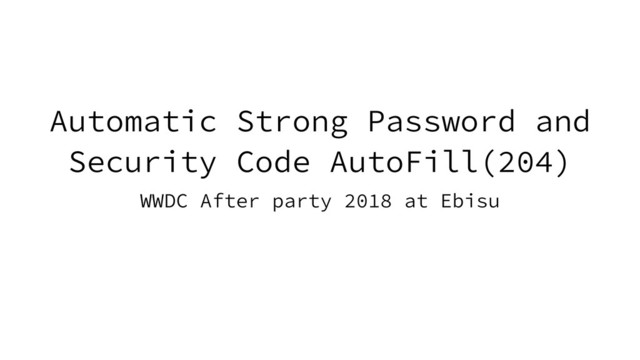 Automatic Strong Password and Security Code AutoFill(204) WWDC After party