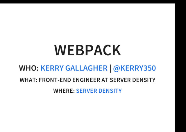 Kerry converted her company's build system and test suite from Require.js / Grunt to Webpack. This talk outlines some of the real benefits they gained, and struggles hit along the way