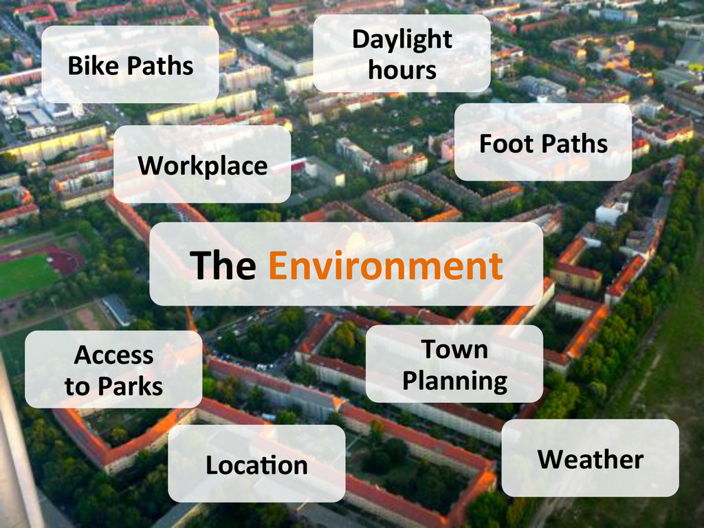 The)Environment) Bike)Paths) Access) to)Parks) Weather) Daylight) hours)