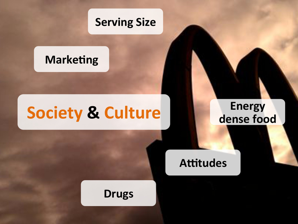Society)&)Culture) MarkeBng) Serving)Size) Agtudes) Cheap)food) Energy) dense)food) Drugs)