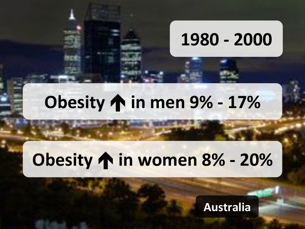Australia) 1980)[)2000) Obesity)!)in)men)9%)[)17%) Obesity)!)in)women)8%)[)20%)