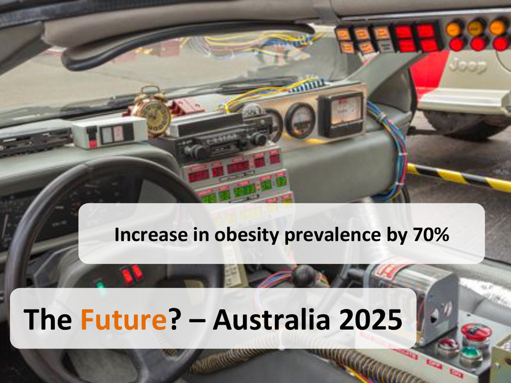 Industrial)Age) The)Future?)–)Australia)2025)) Increase)in)obesity)prevalence)by)70%) Decrease)in)normal)weight)from)41%)to)28%)
