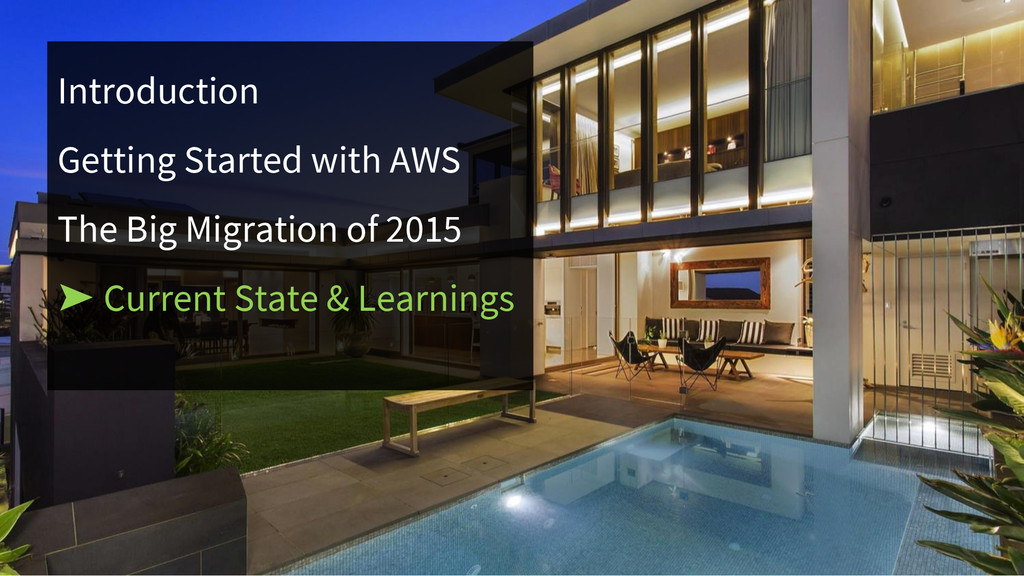 + Mobile API) •5 “offline processing” servers •2 huge DB servers •A handful of ElasticSearch servers already in AWS •A lot of dependencies on Fairfax shared services and other business units