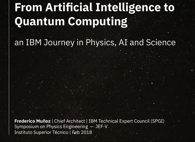 Quantum Computing an IBM Journey in Physics, AI and Science an IBM Journey in Physics, AI and Science Frederico Muñoz | Chief Architect | IBM Technical Expert Council (SPGI) Symposium on Physics Engineering — JEF·V Instituto Superior Técnico | Feb 2018