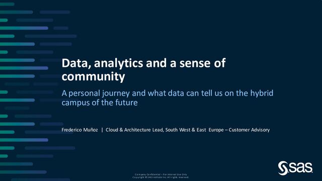 Us e Only C o p yright © SA S I nstitute In c. A ll ri ghts reserved. Technology in higher education Which role? The purpose of AI in education is to support the efforts of teachers and to largely take over the time-consuming tasks of teachers like keeping accurate records and the grading of scripts during examinations etc. These seeming benefits notwithstanding, innovations in AI technology that is responsible for the emergence of intelligent systems like the ‘Artificial Teaching Assistants’ ATA (BOSS Magazine, 2016) into the schooling and education systems, have given most scholars ample reasons to begin to question the role and place which AI should really play in today’s educational sector Ikedinachi, A. P., Misra, S., Assibong, P. A., Olu-Owolabi, E. F., Maskeliūnas, R., & Damasevicius, R. (2019). Artificial intelligence, smart classrooms and online education in the 21st century: implications for human development. Journal of Cases on Information Technology (JCIT), 21(3), 66-79.