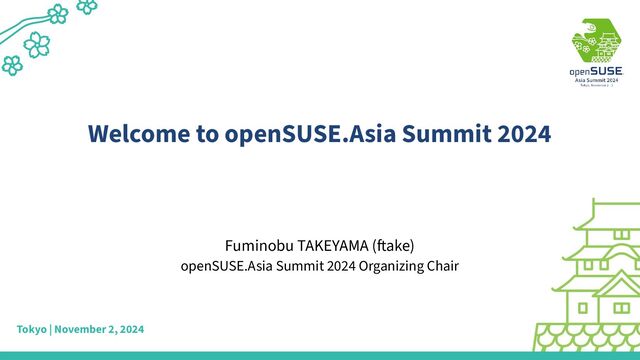 Welcome to openSUSE.Asia Summit 2024 Fuminobu TAKEYAMA (ftake) openSUSE.Asia Summit