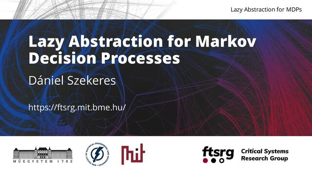 This presentation introduces our ongoing work on a novel lazy abstraction technique for Markov Decision Process (MDP) analysis using adaptive simulation graphs. Lazy abstraction is an abstraction technique that combines exploring the abstract state space and refining it into a single process, refining only parts of the state space on demand. As this has good synergies with partial state-space exploration techniques, we also propose combining our lazy abstraction algorithm and Bounded Real-Time Dynamic Programming to compute the numerical information on the fly while constructing the abstraction. It was presented at the Alpine Verification Meeting 2023.