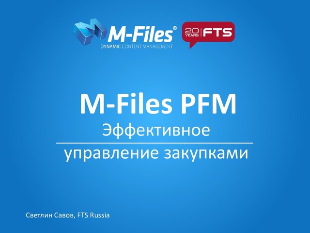 В презентации мы рассказываем о том, как оптимизировать процесс закупок, используя функционал сиcтемы управления информацией M-Files. В презентации мы пошагово рассматриваем, как провести автоматизированную закупочную процедуру, сформировать отчетность и просмотреть детальную аналитику.