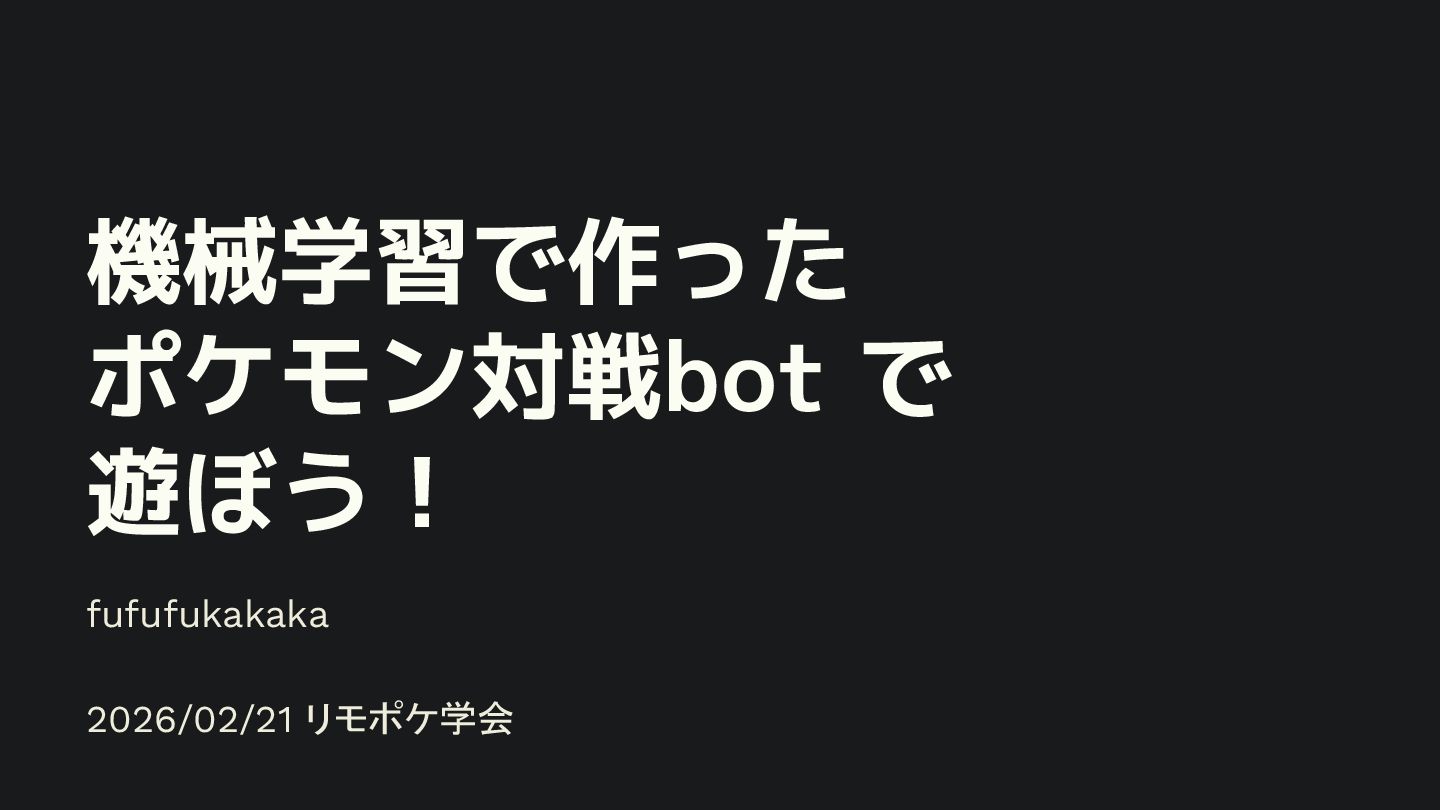 機械学習で作った ポケモン対戦bot で 遊ぼう! fufufukakaka 2026/02/21 リモポケ学会