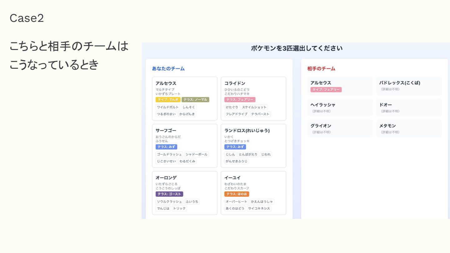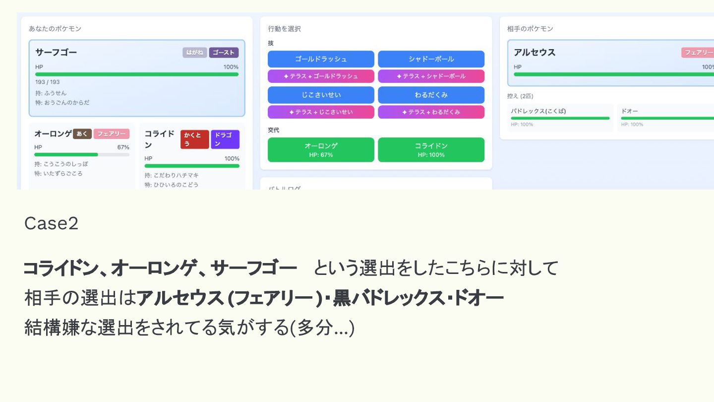 Case2 コライドン、オーロンゲ、サーフゴー という選出をしたこちらに対して 相手の選出はアルセウス (フェアリー )・黒バドレックス・ドオー 結構嫌な選出をされてる気がする(多分...)