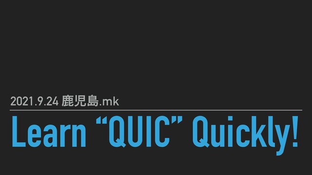 Learn “QUIC” Quickly! 2021.9.24 ࣛࣇౡ.mk
