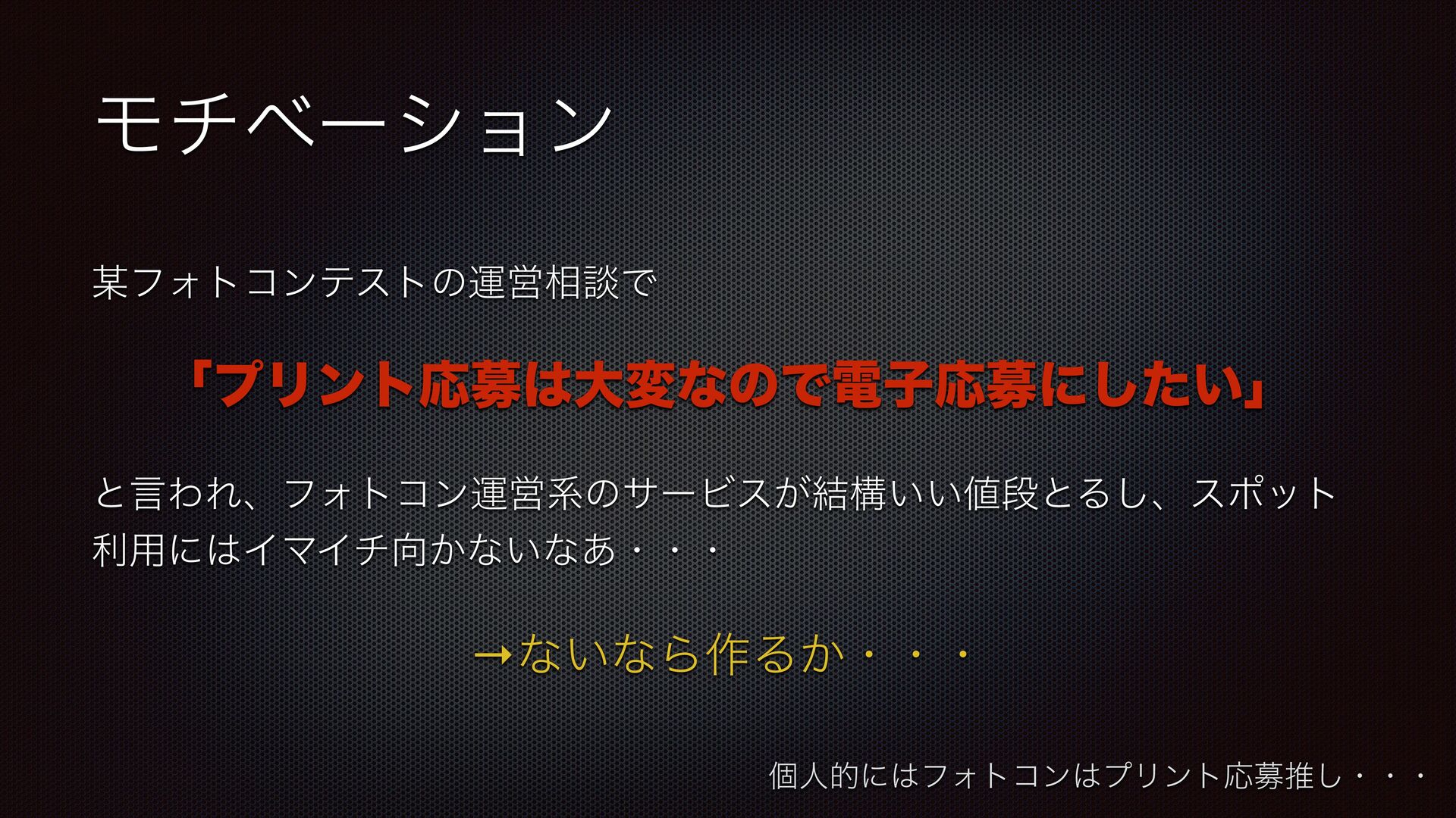 Ϟνϕʔγϣϯ ϑΥτίϯςετͷӡӦ૬ஊͰ ʮϓϦϯτԠืେมͳͷͰిࢠԠืʹ͍ͨ͠ʯ ͱݴΘΕɺϑΥτίϯӡӦܥͷαʔϏε͕݁ߏ͍͍ஈͱΔ͠ɺεϙοτ ར༻ʹΠϚΠν͔ͳ͍ͳ͋ɾɾɾ →ͳ͍ͳΒ࡞Δ͔ɾɾɾ ݸਓతʹϑΥτίϯϓϦϯτԠืਪ͠ɾɾɾ
