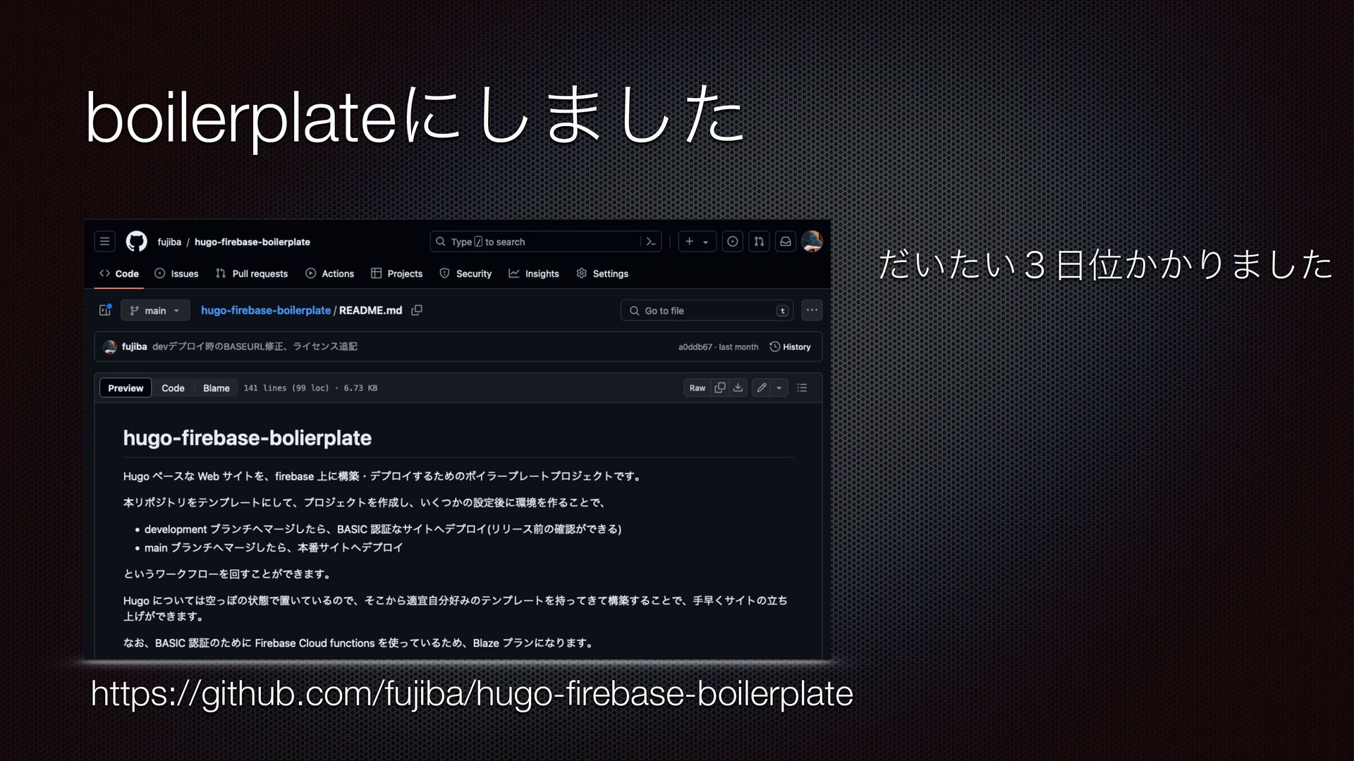 Hugo + Firebaseͳboilerplate࡞ͬͨΒGW͕௵Εͨ 2024.06.08 T.Fujiba