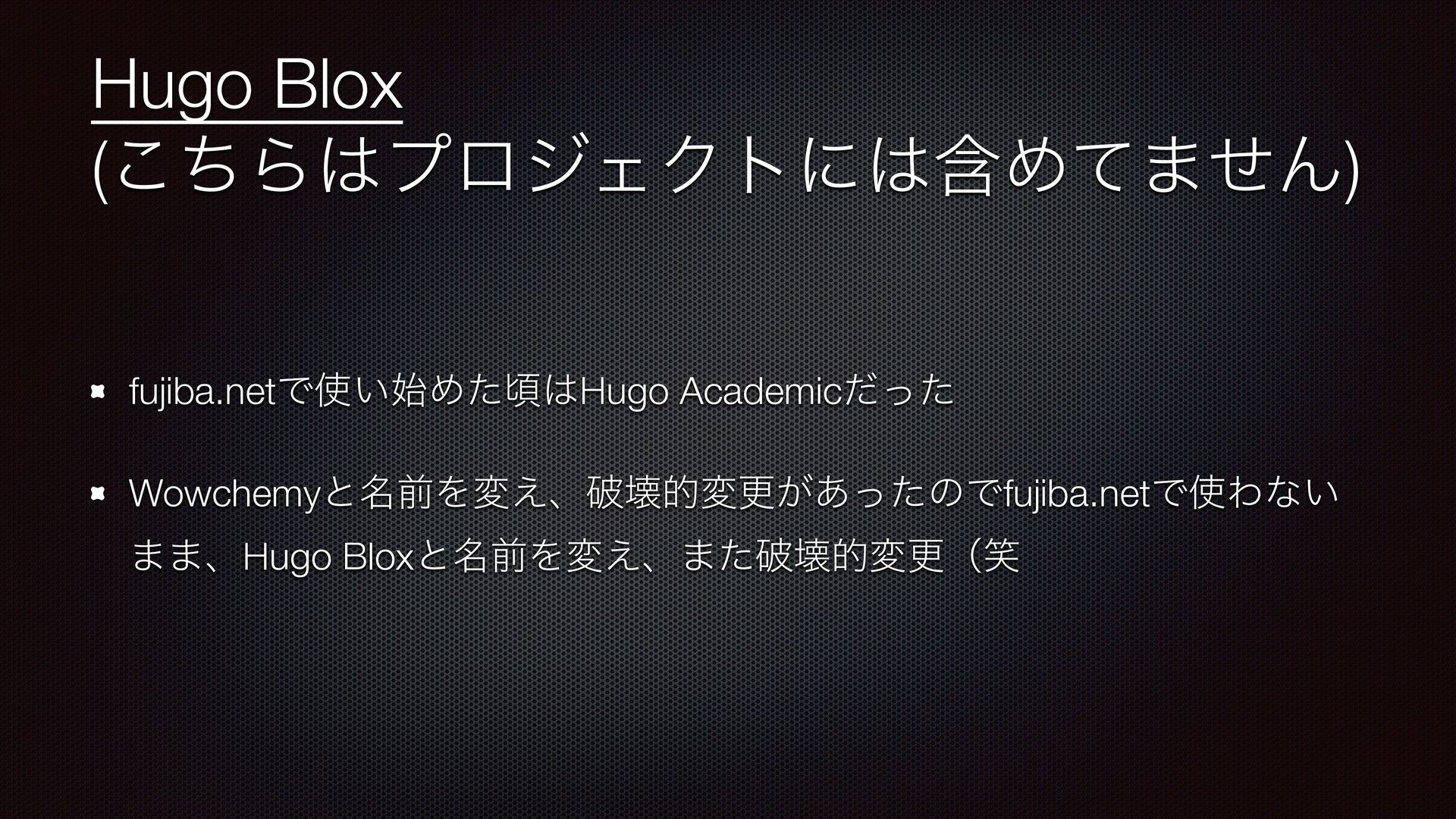 Hugo Blox (ͪ͜ΒϓϩδΣΫτʹؚΊͯ·ͤΜ) fujiba.netͰ͍࢝ΊͨࠒHugo Academicͩͬͨ Wowchemyͱ໊લΛม͑ɺഁյతมߋ͕͋ͬͨͷͰfujiba.netͰΘͳ͍ ··ɺHugo Bloxͱ໊લΛม͑ɺ·ͨഁյతมߋʢস