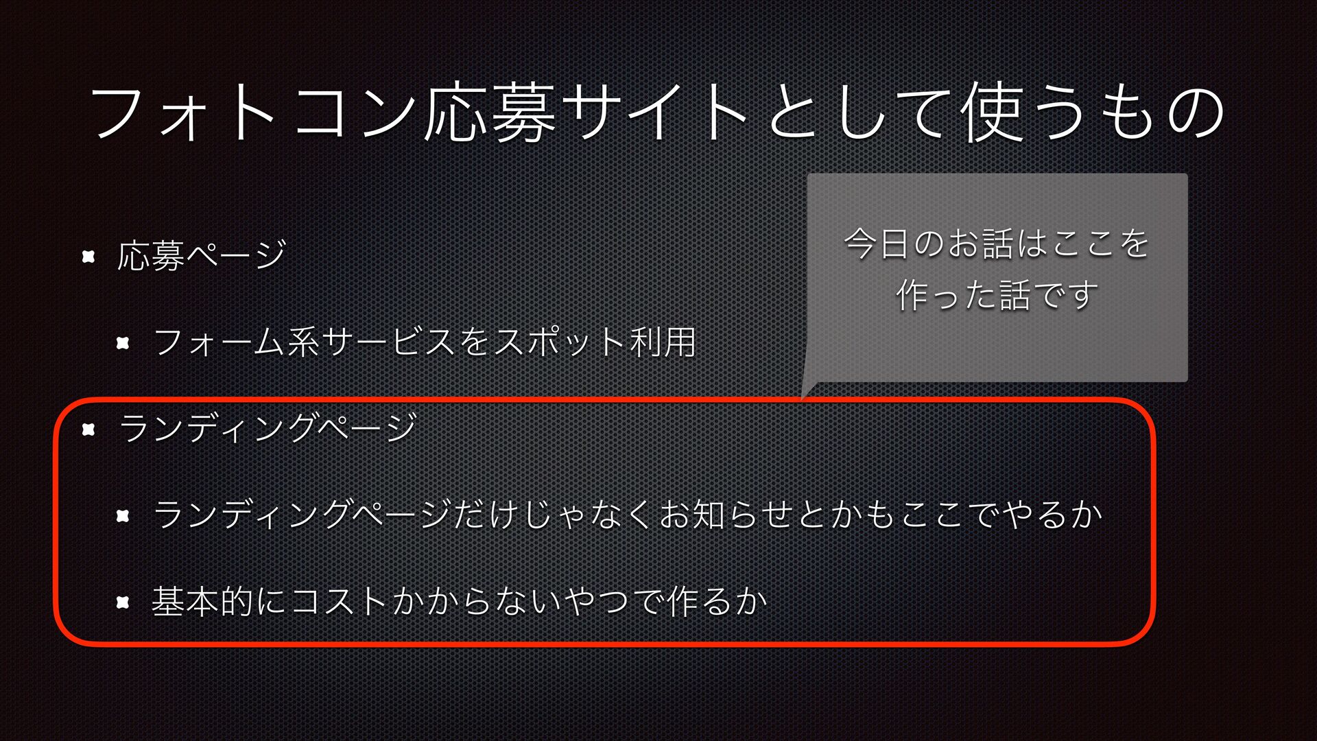 ϑΥτίϯԠืαΠτͱͯ͠͏ͷ Ԡืϖʔδ ϑΥʔϜܥαʔϏεΛεϙοτར༻ ϥϯσΟϯάϖʔδ ϥϯσΟϯάϖʔδ͚ͩ͡Όͳ͓͘Βͤͱ͔͜͜ͰΔ͔ جຊతʹίετ͔͔Βͳ͍ͭͰ࡞Δ͔ ࠓͷ͓͜͜Λ ࡞ͬͨͰ͢