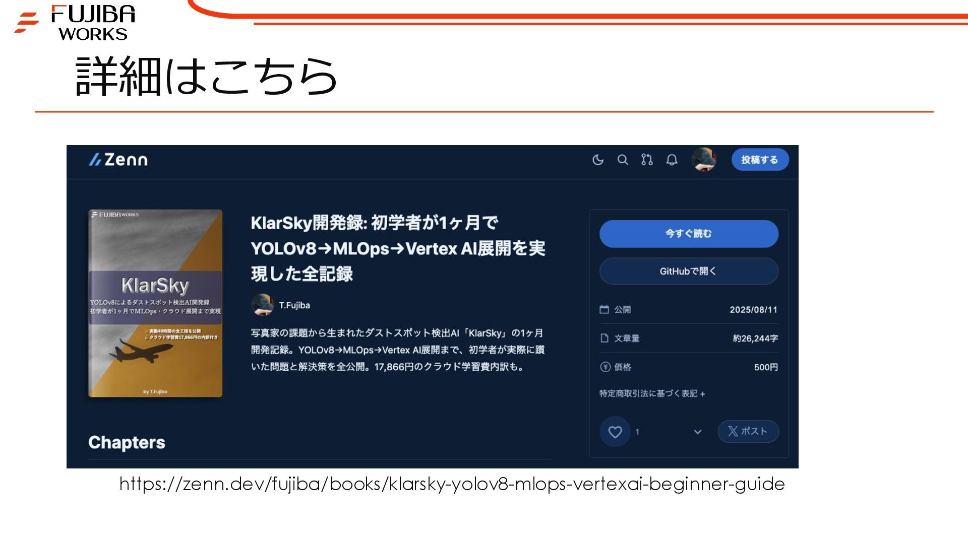 詳細: https://zenn.dev/fujiba/books/klarsky-yolov8-mlops-vertexai-beginner-guide