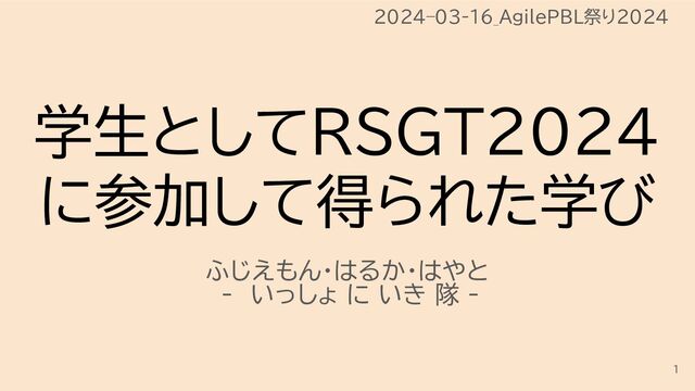 学生としてRSGT2024 に参加して得られた学び ふじえもん・はるか・はやと - いっしょ に いき 隊 - 2024–03-16_AgilePBL祭り2024