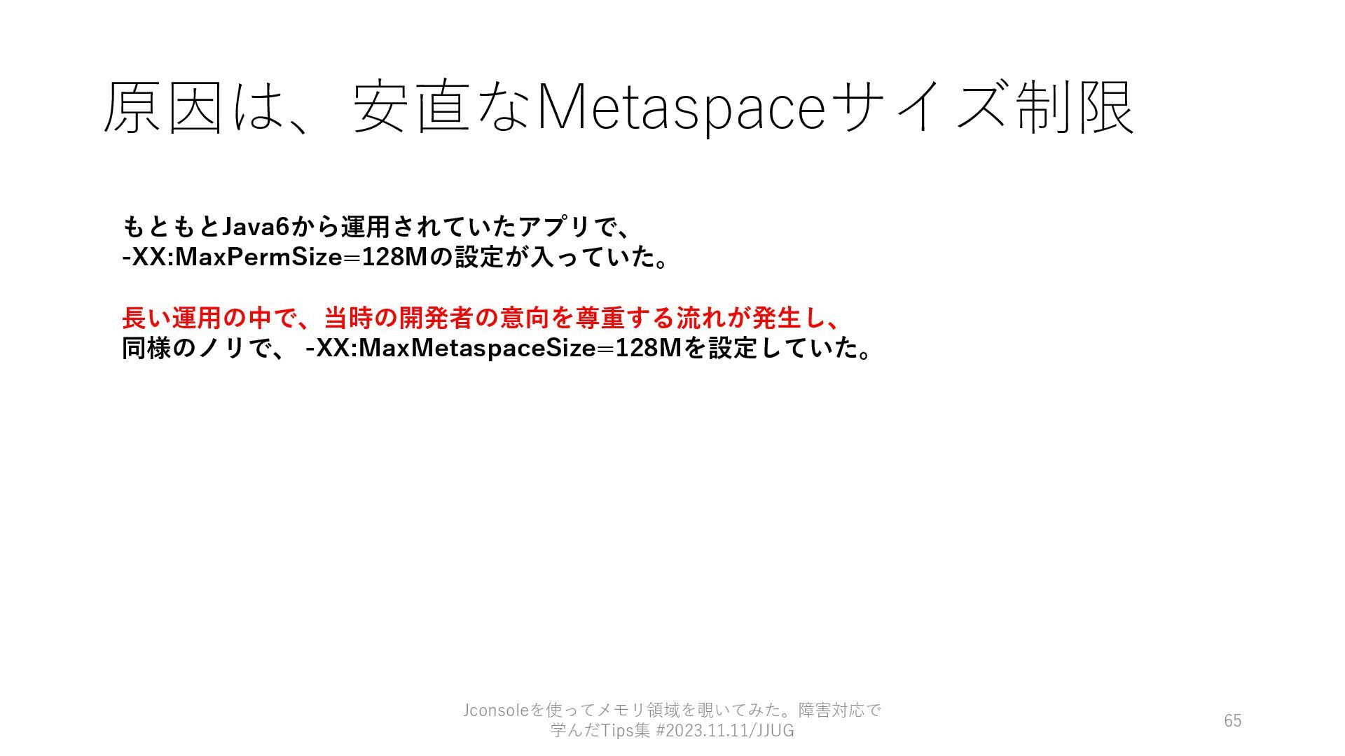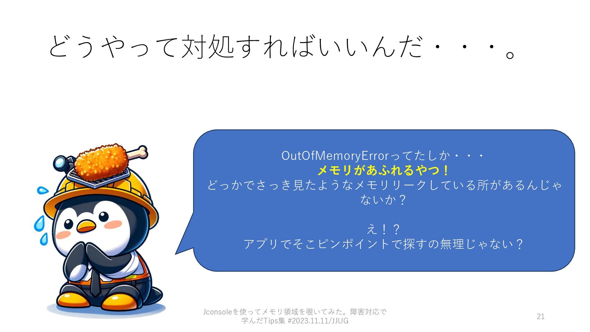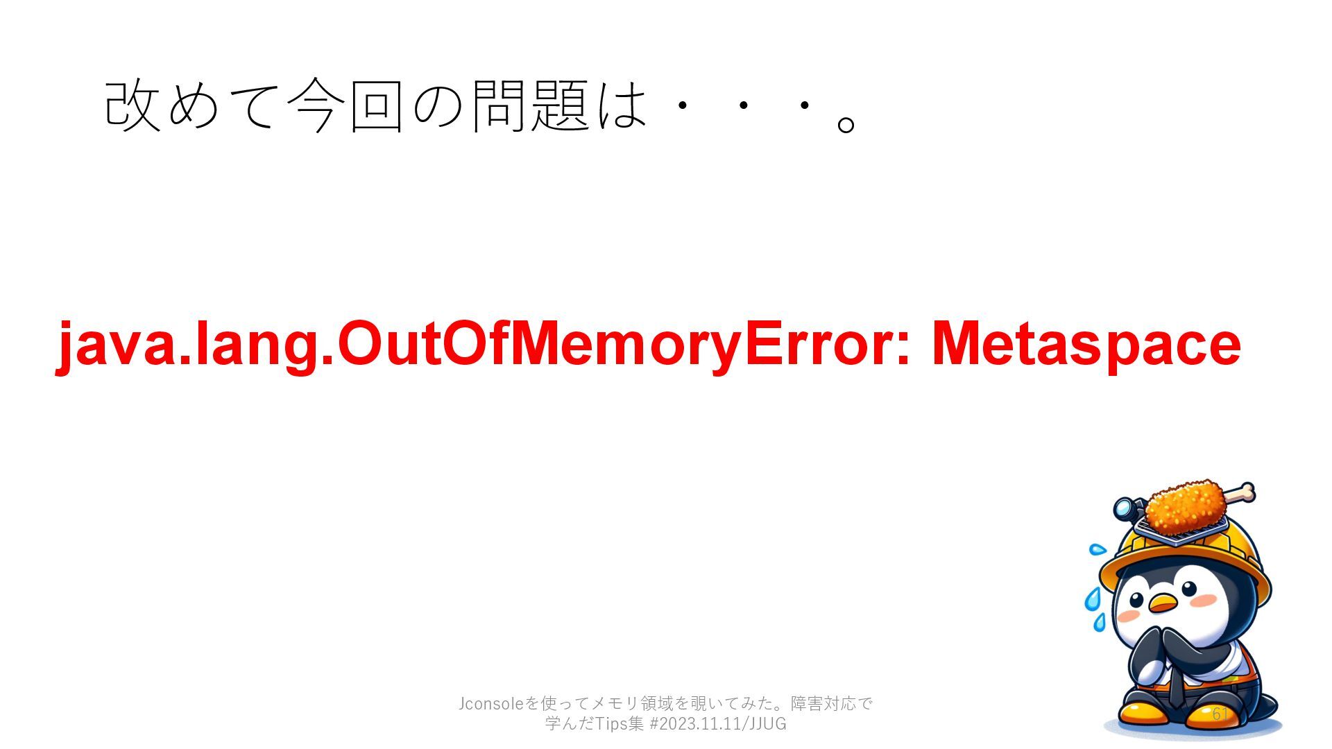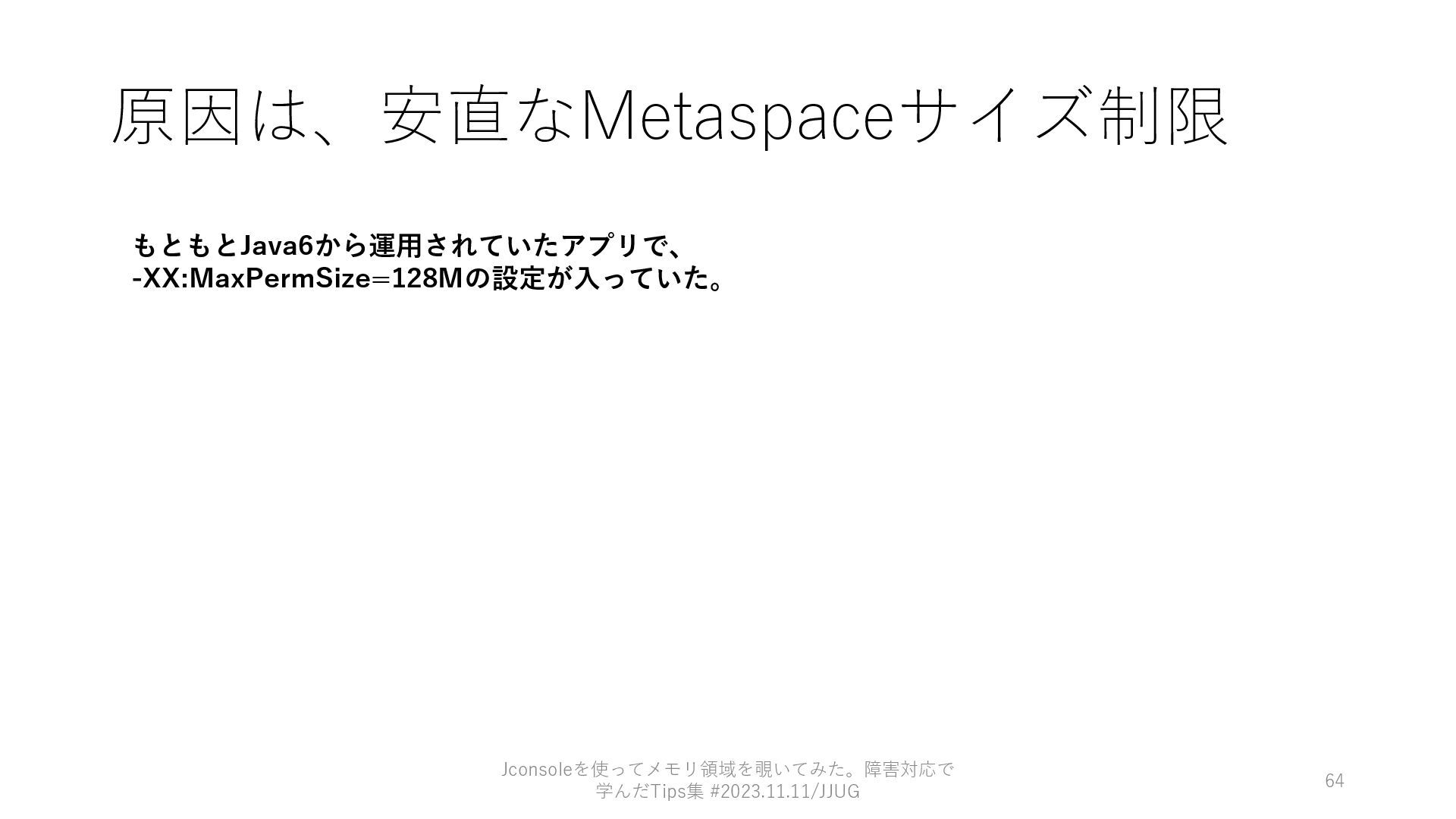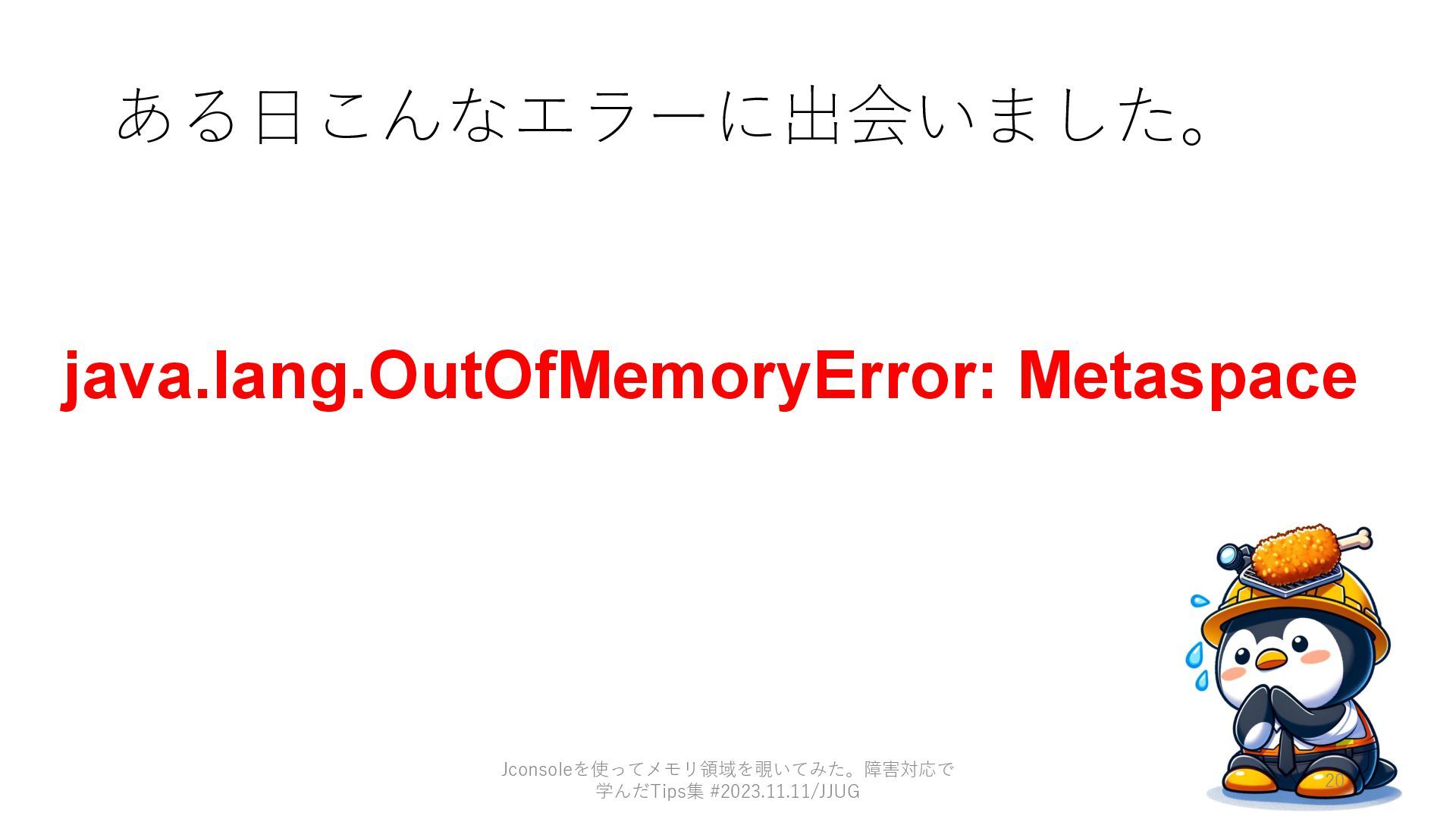public int instanceCounter = 0;//インスタンス変数 public ExampleClass() { staticCounter++; instanceCounter++; } } public class TestClass { public static void main(String[] args) { ExampleClass obj1 = new ExampleClass(); ExampleClass obj2 = new ExampleClass(); } } System.out.println(obj2.staticCounter); System.out.println(obj2.instanceCounter); 実行結果 Staticカウント:2 インスタンスカウント:1 初学の頃 Jconsoleを使ってメモリ領域を覗いてみた。障害対応で 学んだTips集 #2023.11.11/JJUG 9