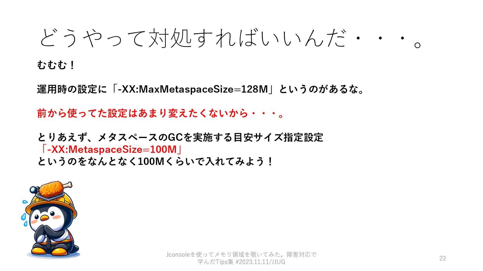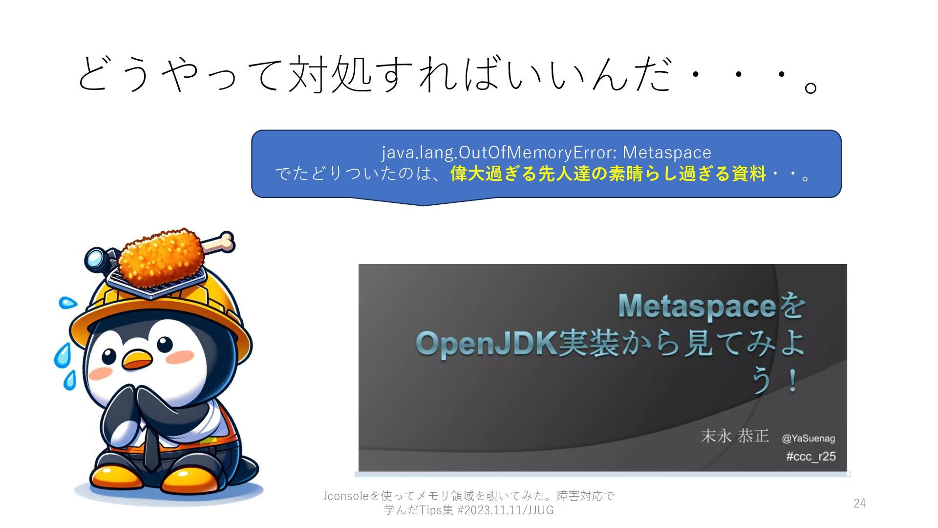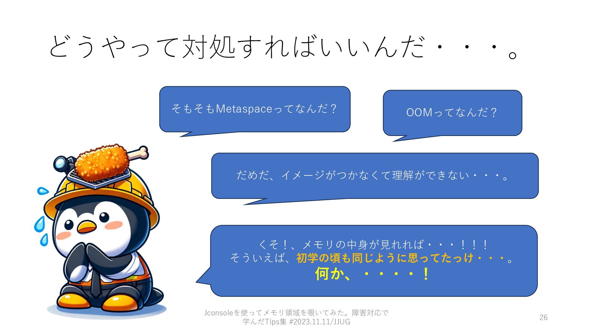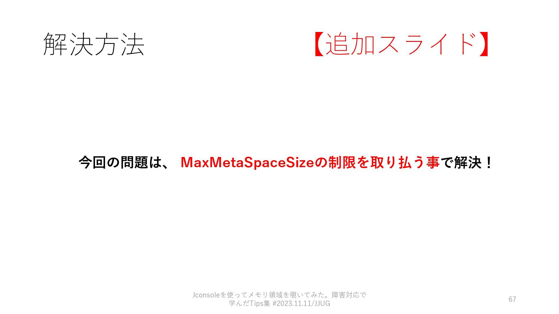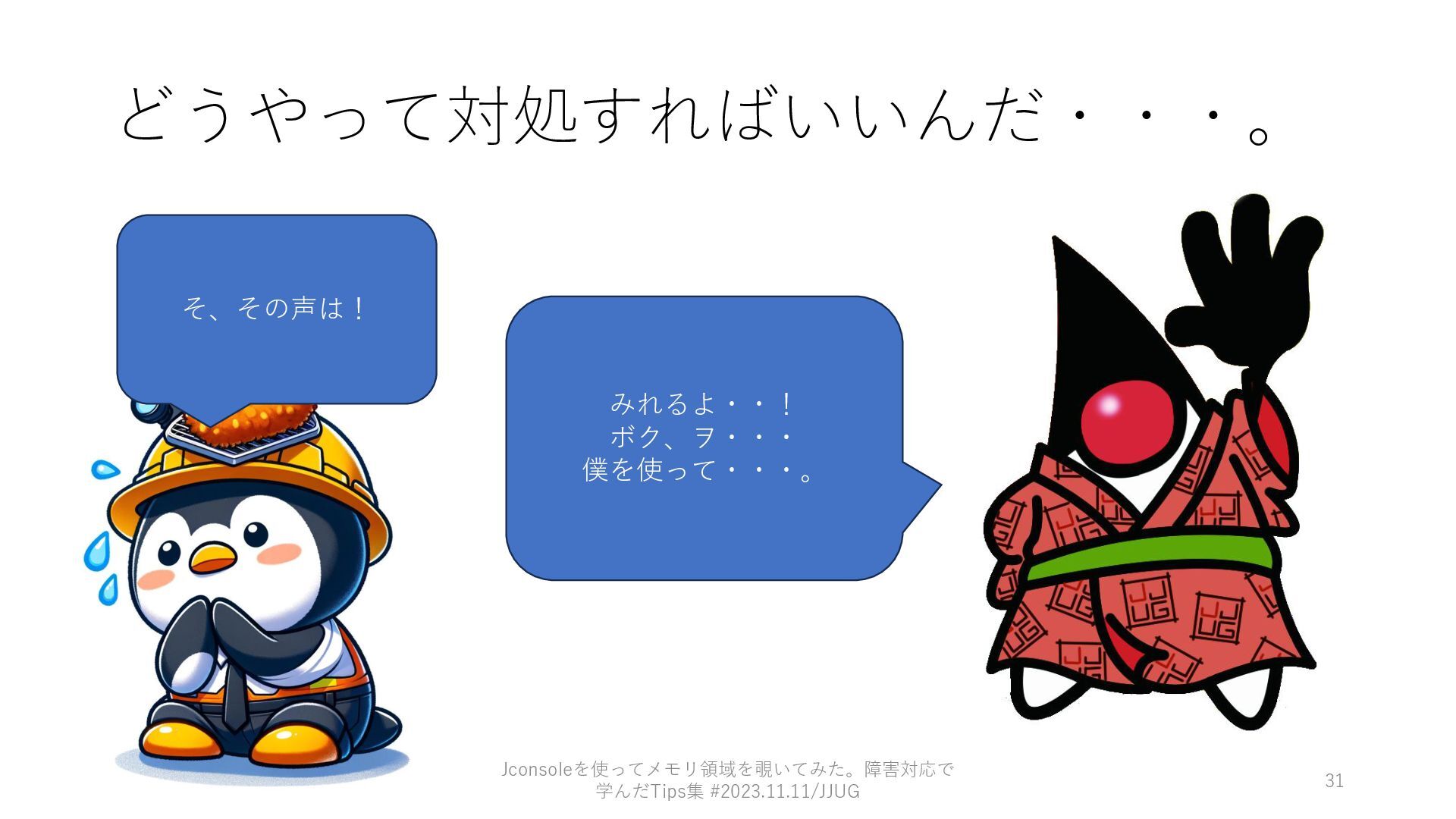 public int instanceCounter = 0;//インスタンス変数 public ExampleClass() { staticCounter++; instanceCounter++; } } public class TestClass { public static void main(String[] args) { ExampleClass obj1 = new ExampleClass(); ExampleClass obj2 = new ExampleClass(); } } System.out.println(obj2.staticCounter); System.out.println(obj2.instanceCounter); 実行結果 Staticカウント:2 インスタンスカウント:1 初学の頃 Jconsoleを使ってメモリ領域を覗いてみた。障害対応で 学んだTips集 #2023.11.11/JJUG 9