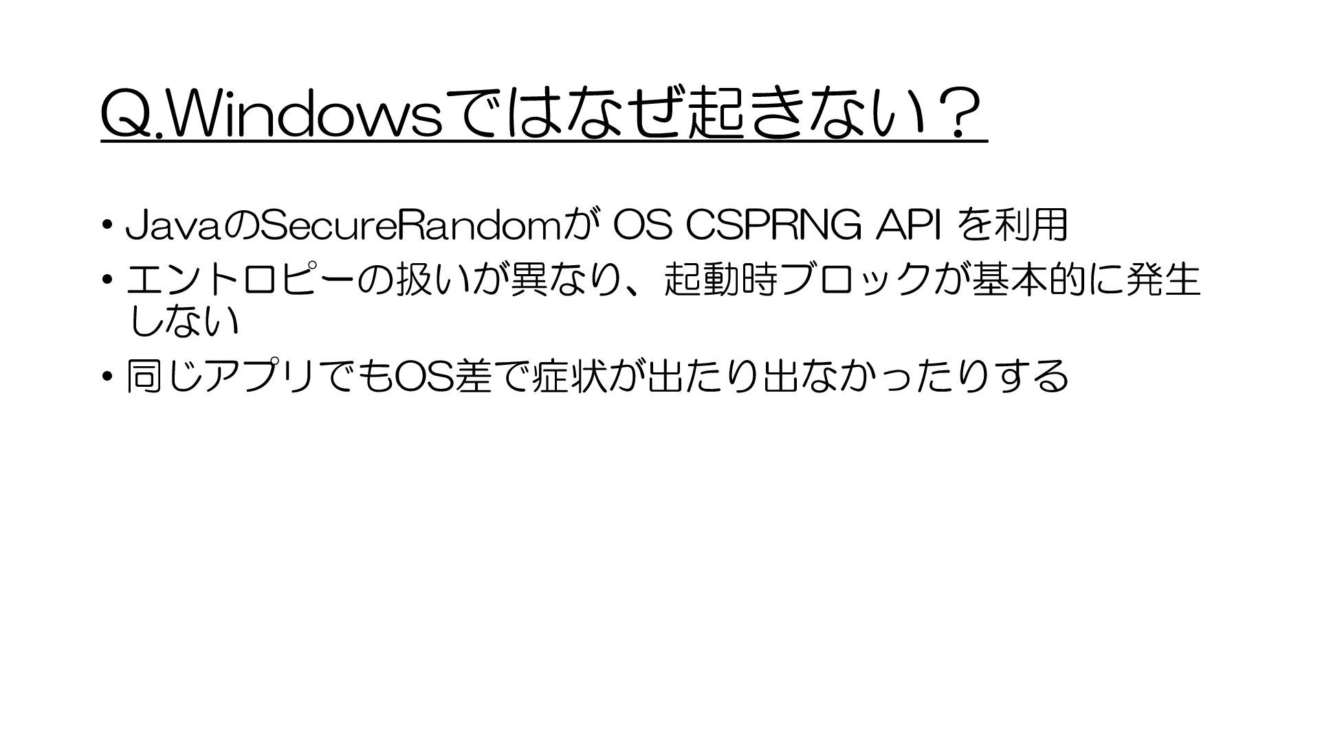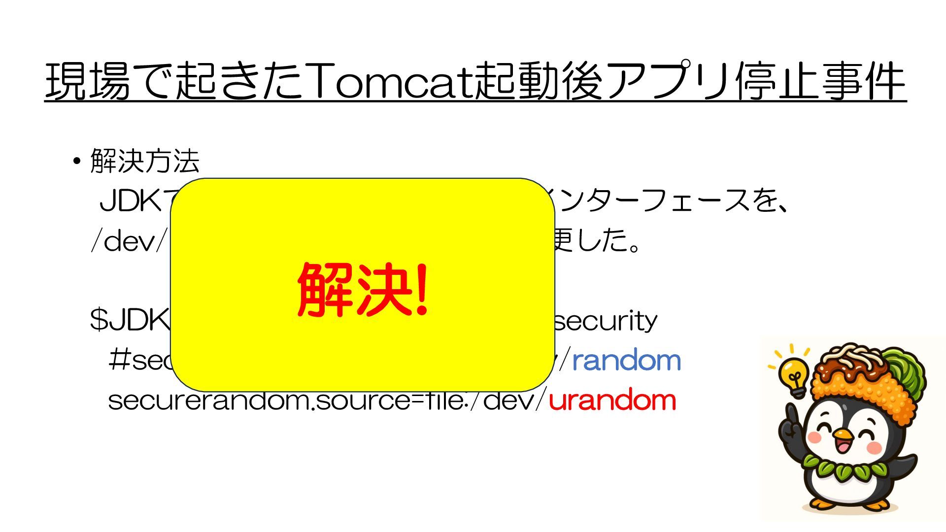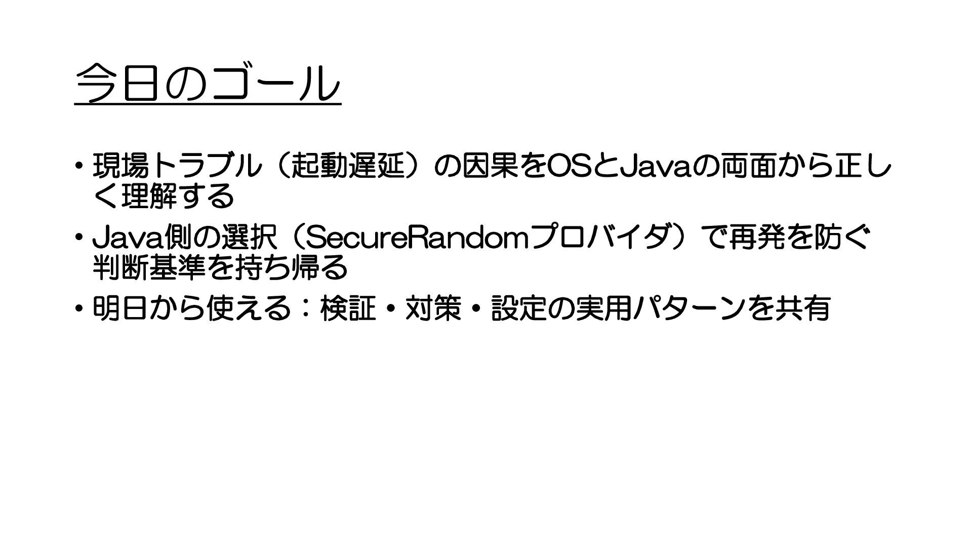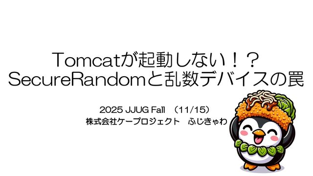 2025/11/15 JJUG Fall 株式会社ケープロジェクト ふじきゃわ発表 ※本資料は古いLinuxへの対応履歴です、最新のLinuxでは/randomもブロックしないような改善が行われていますのでご注意ください。