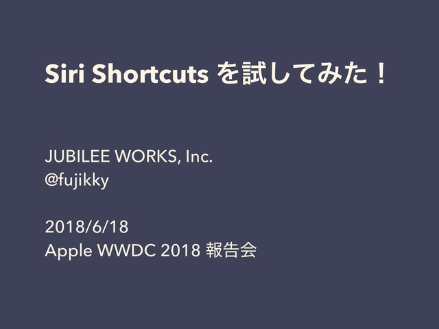 Siri Shortcuts Λࢼͯ͠Έͨʂ JUBILEE WORKS, Inc. @fujikky 2018/6/18 Apple WWDC