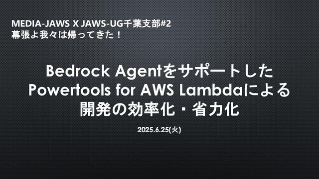 MEDIA-JAWS X JAWS-UG千葉支部#2 幕張よ我々は帰ってきた! 2025.6.25(火) Bedrock Agentをサポートした Powertools for AWS