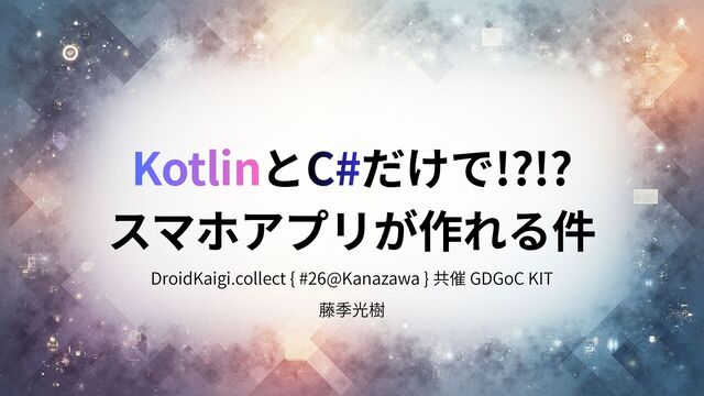 と だけで!?!? スマホアプリが作れる件 Kotlin C# 藤季光樹 DroidKaigi.collect { #26@Kanazawa }