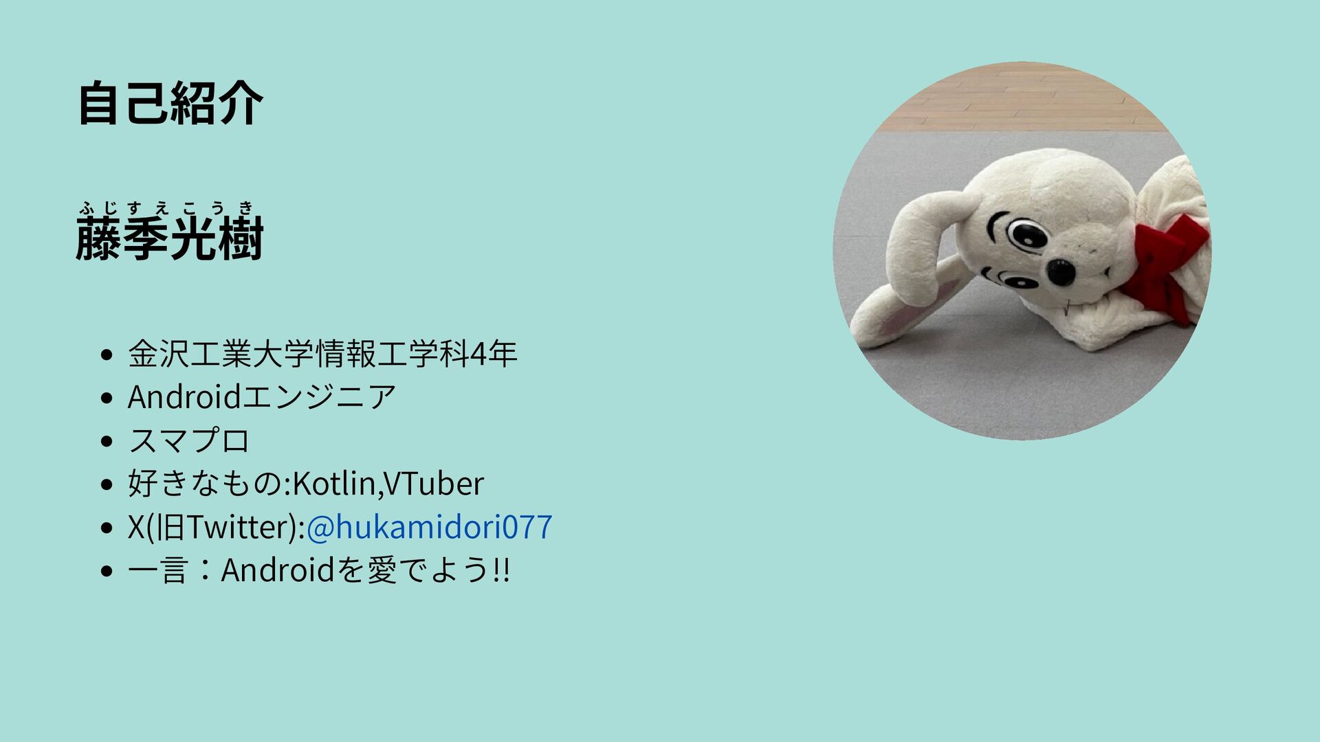 Androidエンジニア スマプロ 好きなもの:Kotlin,VTuber X(旧Twitter):@hukamidori077 一言:Androidを愛でよう!!