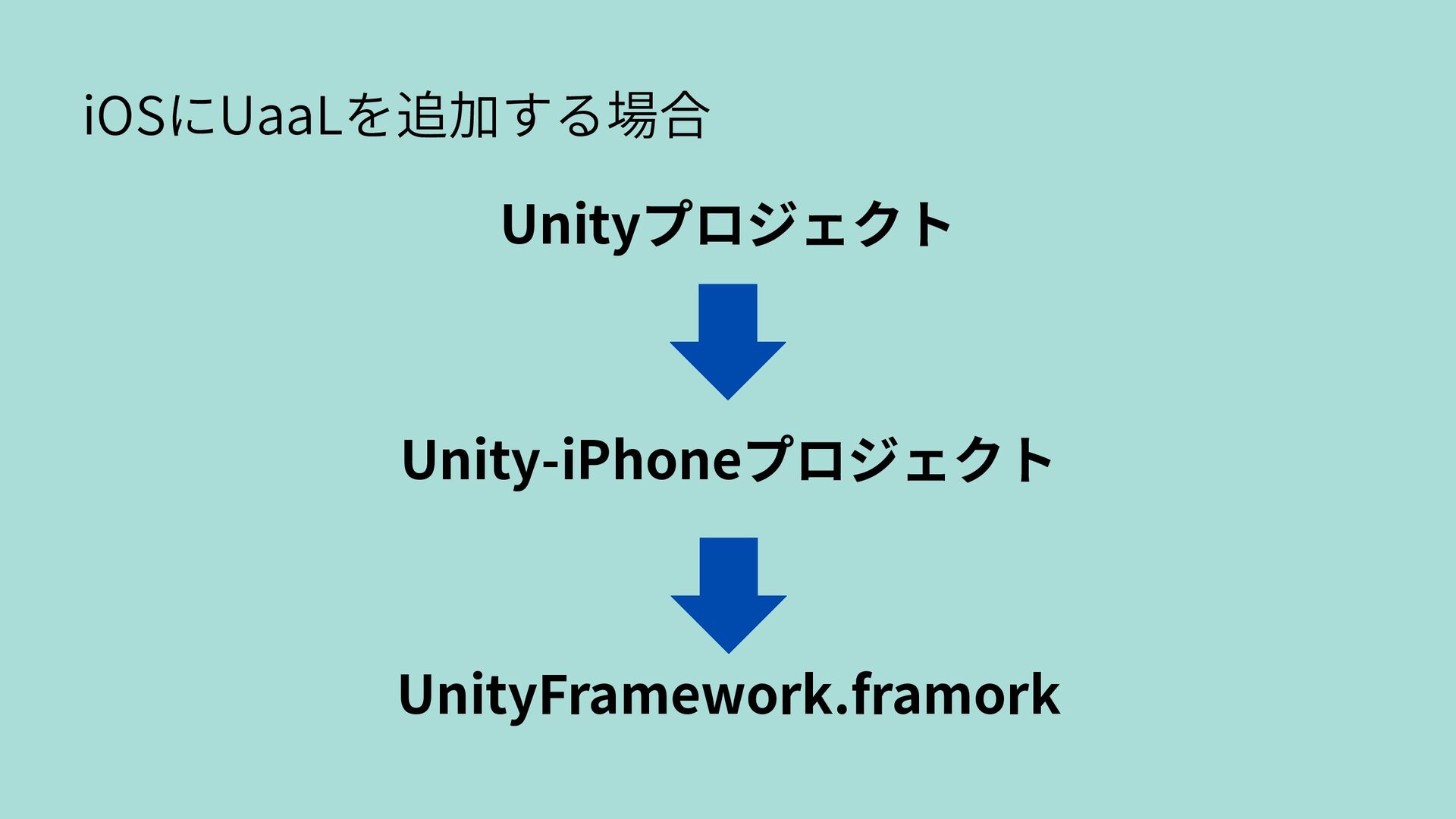 iOSにUaaLを追加する場合 UnityFramework.framork Unity-iPhoneプロジェクト Unityプロジェクト