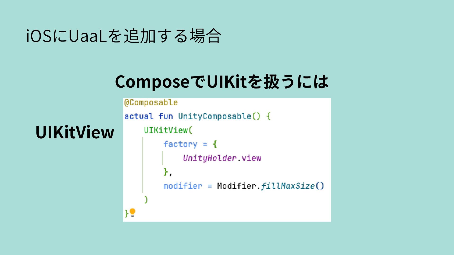 iOSにUaaLを追加する場合 ComposeでUIKitを扱うには UIKitView
