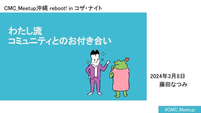 わたし流 コミュニティとのお付き合い 2024年3月8日 藤田なつみ CMC_Meetup沖縄 reboot! in コザ・ナイト