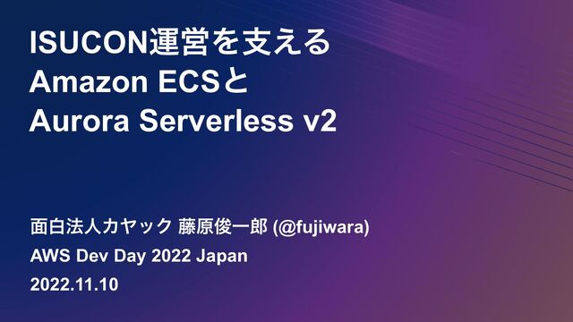 ISUCONӡӦΛࢧ͑Δ Amazon ECSͱ Aurora Serverless v2 ໘ന๏ਓΧϠοΫ ౻ݪढ़Ұ (@fujiwara) AWS