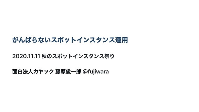 秋のスポットインスタンス祭り ~ そろそろクラウドネイティブなコスト最適化はじめてみませんか? 発表資料です https://awsj-compute.connpass.com/event/192302/