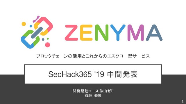 SecHack365 '19 中間発表 ブロックチェーンの活用とこれからのエスクロー型サービス 開発駆動コース仲山ゼミ 藤原 出帆 1