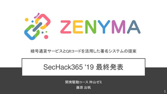 SecHack365 '19 最終発表 暗号通貨サービスとQRコードを活用した署名システムの提案 開発駆動コース 仲山ゼミ 藤原 出帆 1