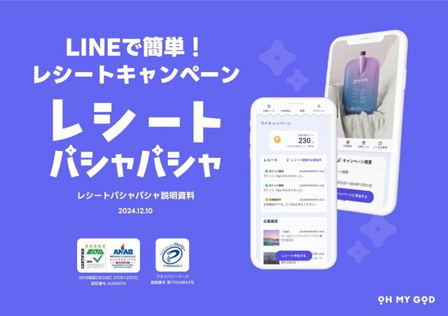 LINEで簡単にAIレシートキャンペーンを作れるアプリ「レシートパシャパシャ」のサービス概要になります。