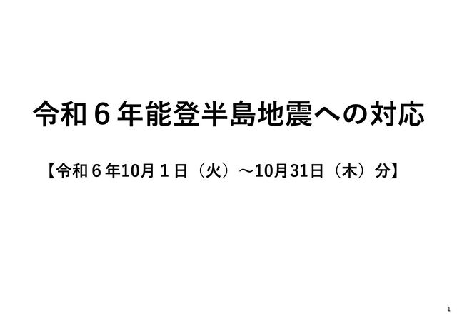 (+34) 161人 (+11) (うち災害関連死) 181人 (+34) 61人 (+11) 負傷者 1,217人 (+5) 516人 増減なし 行方不明者 3人 増減なし 3人 増減なし 住家被害※2 91,099棟 (+4,716) 10,461棟 (+57) 避難所 14箇所 (-10) 4箇所 (-3) 避難者 82人 (-167) 23人 (-49) ※1 輪島市の数値は石川県の内数。避難所数、避難者数は1.5次避難所及び2次避難所を除く ※2 全壊・半壊・一部破損 2 (2)復旧・復興状況等(石川県発表 8月21日14時 時点 ) 石川県 増減(7月18日比) 輪島市 増減(7月18日比) 応急仮設住宅 着工戸数 6,745戸 (+18) 2,897戸 増減なし 応急仮設住宅 完成戸数 5,644戸 (+343) 2,526戸 (+135) 公費解体 解体見込棟数※3 32,410棟 - 9,685棟 - 公費解体 完了棟数※3 5,096棟 (+1,700) 874棟 (+322) 解体見込棟数に対する解体完了率※3 15.7% (+5.2%) 9.0% (+3.3%) 罹災証明書 発行件数 非公表 - 10,288件※4 (+54) 【国等の体制】 ・ 国 :令和6年能登半島地震復旧・復興支援本部設置(2月1日)、第10回会議(9月10日) ・ 輪島市:復興まちづくり計画検討委員会を初開催(5月9日)、第4回会合(9月20日) ※3 石川県「公費解体の進捗状況(令和6年9月末)」 ※4 輪島市災害対策本部会議資料 8月13日時点 ※ グレーは終了又は(一時)中断事項