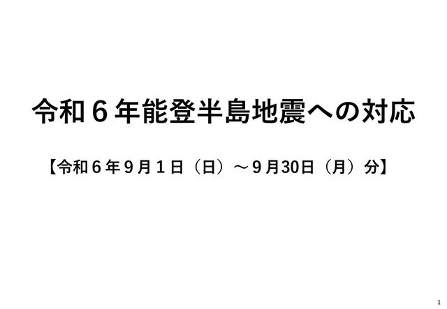 (+35) 150人 (+8) (うち災害関連死) 147人 (+37) 50人 (+10) 負傷者 1,212人 (+1) 516人 増減なし 行方不明者 3人 増減なし 3人 増減なし 住家被害※2 86,383棟 (+2,862) 10,404棟 (+62) 避難所 24箇所 (-10) 7箇所 (-6) 避難者 249人 (-149) 72人 (-49) ※1 輪島市の数値は石川県の内数。避難所数、避難者数は1.5次避難所及び2次避難所を除く ※2 全壊・半壊・一部破損 2 (2)復旧・復興状況等(石川県発表 8月21日14時 時点 ) 石川県 増減(7月18日比) 輪島市 増減(7月18日比) 応急仮設住宅 着工戸数 6,745戸 (+18) 2,897戸 増減なし 応急仮設住宅 完成戸数 5,644戸 (+343) 2,526戸 (+135) 公費解体 解体見込棟数※3 32,410棟 - 9,685棟 - 公費解体 完了棟数※3 3,396棟 (+1,930) 552棟 (+310) 解体見込棟数に対する解体完了率※3 10.5% - 5.7% - 罹災証明書 発行件数 非公表 - 10,288件※4 (+54) 【国等の体制】 ・ 国 :令和6年能登半島地震復旧・復興支援本部設置(2月1日)、第10回会議(9月10日) ・ 輪島市:復興まちづくり計画検討委員会を初開催(5月9日)、第3回会合(8月8日) ※3 石川県「公費解体の進捗状況(令和6年8月末)」(令和6年9月6日付け) ※4 輪島市災害対策本部会議資料 8月13日時点 ※ グレーは終了又は(一時)中断事項
