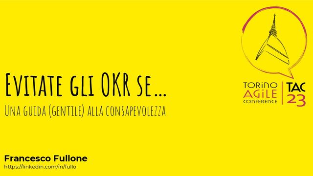 Gli OKR sono diventati di moda e questo è un bene ed un male. Se da una parte il far conoscere questo strumento ad una platea di manager più ampia sia un vantaggio dall'altro, però, sta diventando sempre più frequente l'inserimento degli OKR in contesti poco coerenti con lo strumento (per cultura, risorse o tipologia di impresa). In questo mini intervento parleremo di quando e dove NON utilizzare gli OKR e di come vivere, comunque, felici ;)