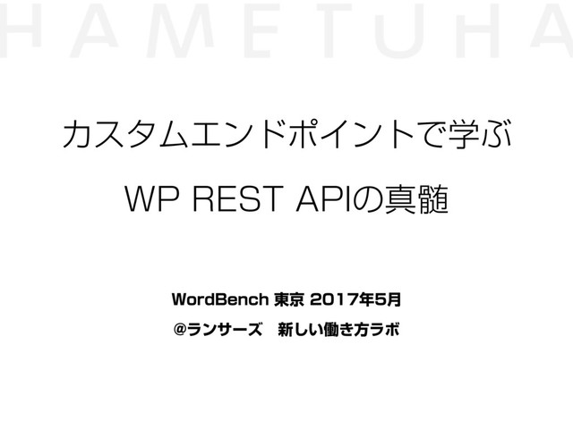 WordBench東京2017/5 @ ランサーズ新しい働き方ラボでの発表です。カスタムエンドポイントはこうやって作るんやでというお話。