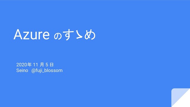 Azure のすゝめ 2020年 11 月 5 日 Seino @fuji_blossom