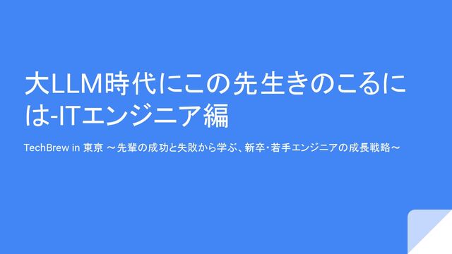 大LLM時代にこの先生きのこるに は-ITエンジニア編 TechBrew in 東京 ~先輩の成功と失敗から学ぶ、新卒・若手エンジニアの成長戦略~