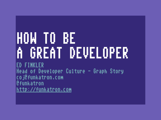 HOW TO BE A GREAT DEVELOPER ED FINKLER Head of