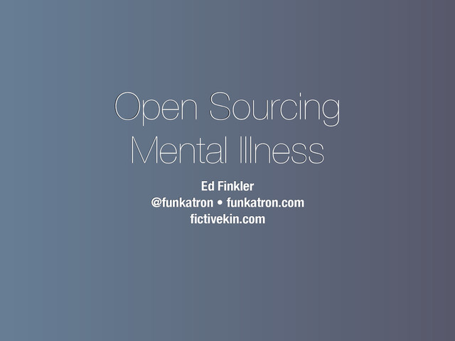 Open Sourcing Mental Illness Ed Finkler @funkatron • funkatron.com fictivekin.com